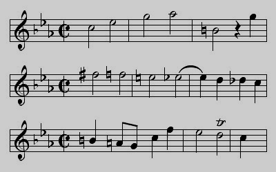 zurück / Startseite / weiter ![]() ![]() "Königliches" Thema am Anfang des 1. Ricercare in c-moll (a 3 voci) aus dem "Musikalischen Opfer" BWV 1079 von J. S. Bach: ![]()