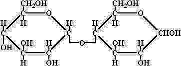 (vorwärts zu lesen: a oder h = 0 und b oder c = 1, rückwärts zu lesen: b oder h = 0 und a oder c = 1) ![]() Chemische Struktur von Maltose (C12H22O11):